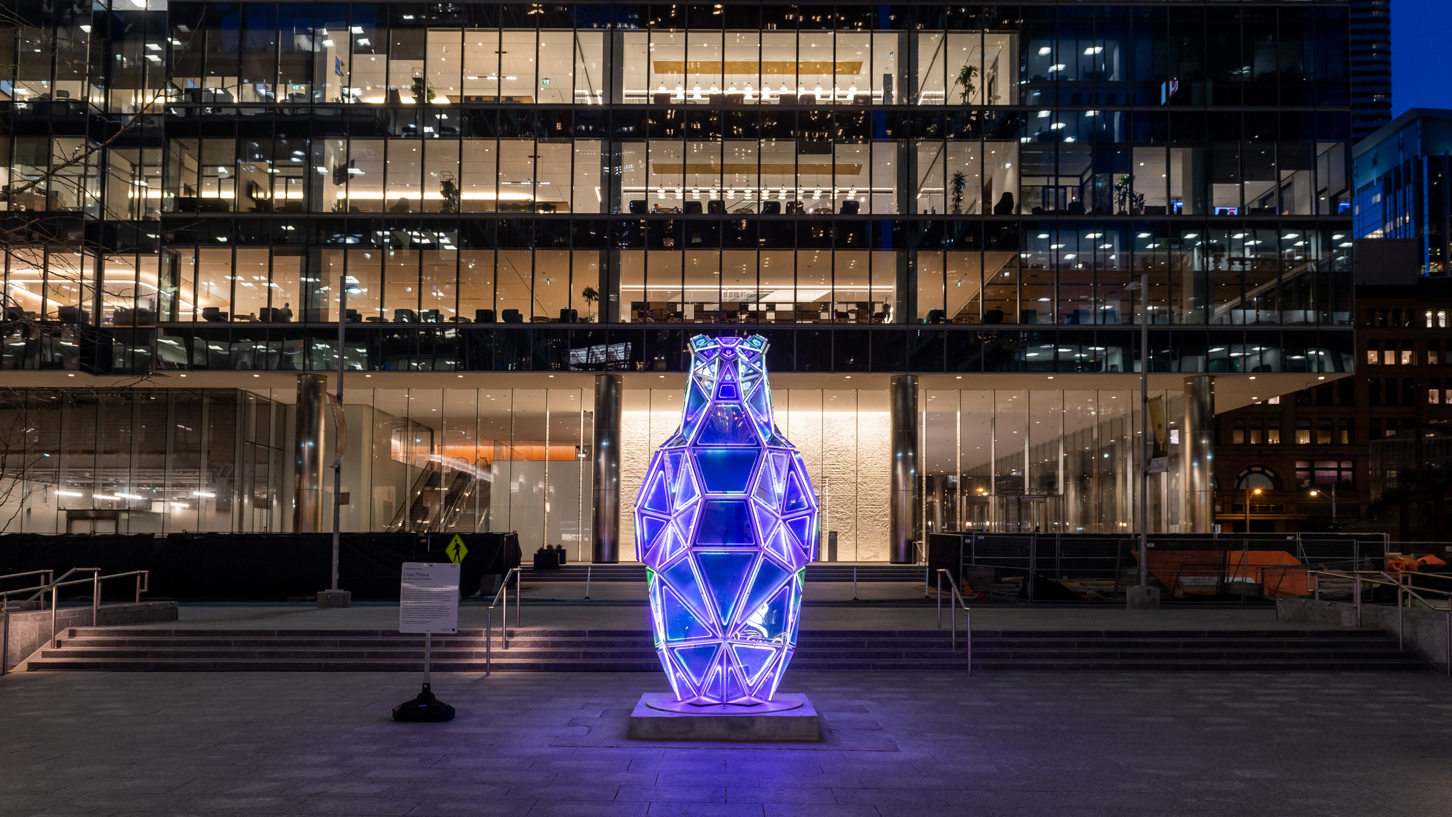 At Ursa Minor’s grand scale, it serves as a glowing compass and landmark for navigation as we maneuver through uncertain times. Jen Lewin brings us direct interaction with nature through her unique LED technology. Ursa Minor is one of two sculptures in a new body of work highlighting the natural world in our current moment of climate crisis. The work will premiere this September as part of The Last Ocean; an 800 square foot field of ice-like interactive platforms inspired by the Ross Ice Shelf in Antarctica.