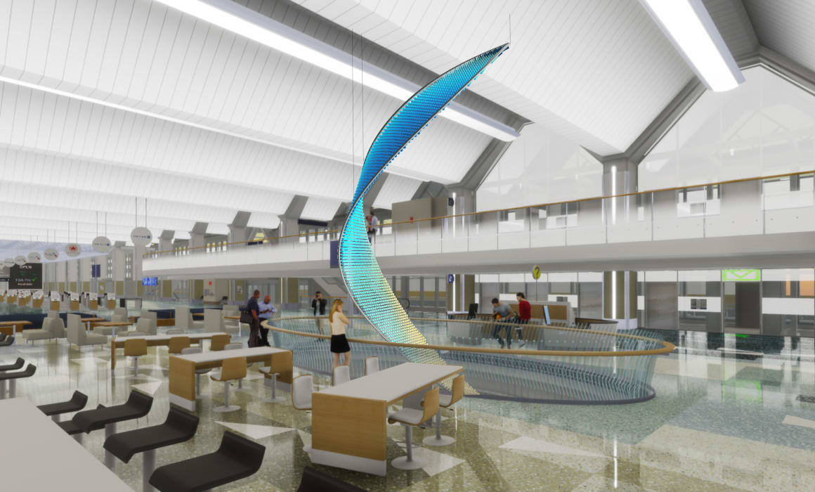 FLOW is the first work that combines Lewin’s FLUX and MAGICAL HARP series—integrating light and sound components into a single sculpture designed for the ‘Iolani School. Composed of twenty-four interactive light tubes, this interactive instrument swirls with light and plays ethereal musical tones when participants move beneath its laser sensors. Triggering a certain tube changes the overall color palette and tonal range of the sculpture, adding elements of surprise and discovery to the artwork.